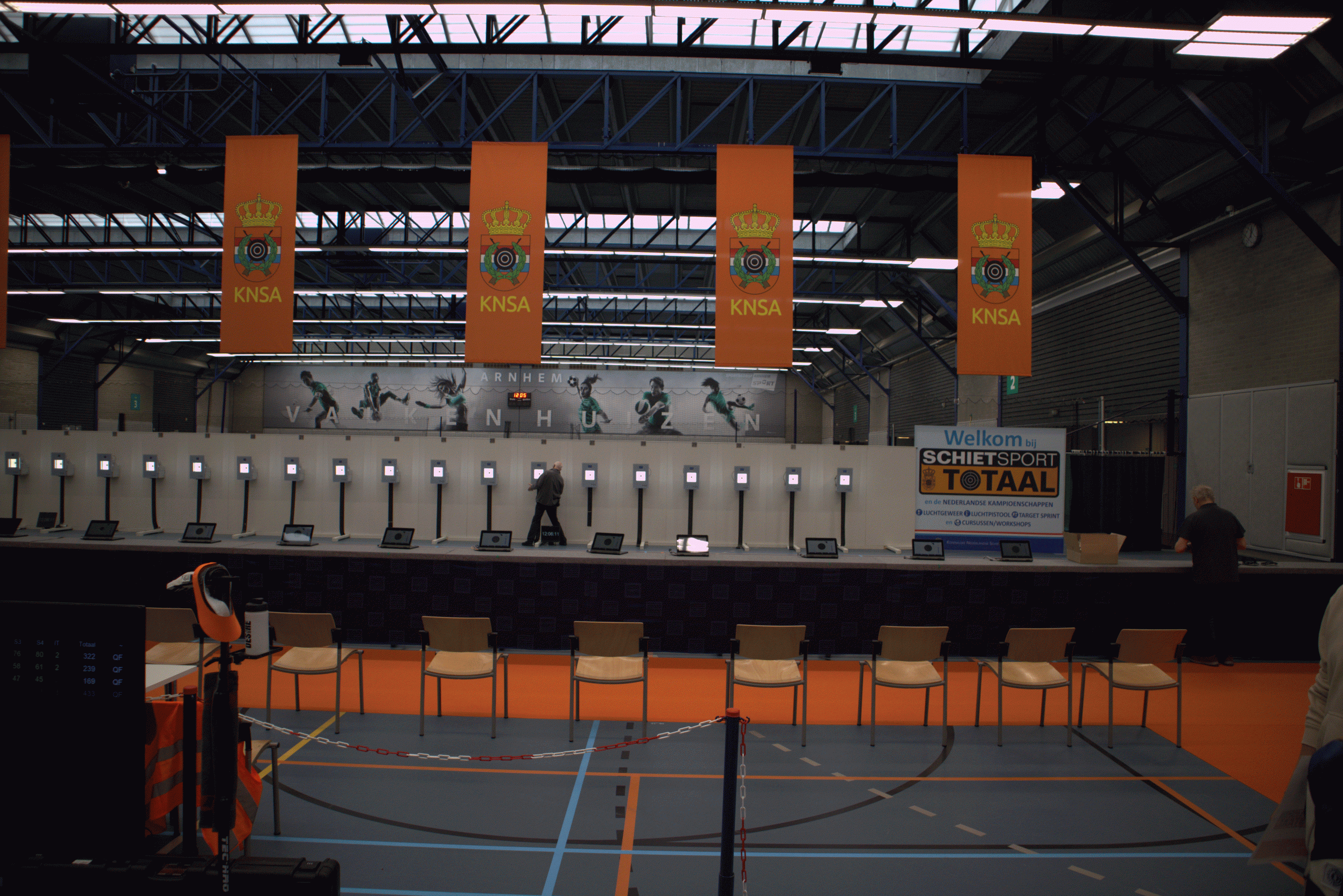 heb het mailtje volgens mij wel 3 keer gelezen voordat ik het kon geloven, hoe vet!! Ik ben gewoon geselecteerd als de top 10 van Nederland, en dat terwijl ik nog maar een paar maanden uit de hand schoot. Ook nog zonder schietjas of schoenen. Hoe dan ook een droom die uit kwam. Op 6 Juli om 9:00 vertrokken mijn vader en ik met veel zin en lichte spanning. Helaas ging de rit naar Arnhem niet zo als gepland en kregen wij een auto ongeluk. Mijn trainer (John Willems) gebeld en hij heeft mij opgepikt om samen verder te rijden en redelijk snel kon ook mijn vader verder rijden. Alleen had ik een probleem in het ongeluk heb ik een schouderblessure opgelopen maar ik wou hoe dan ook schieten. Na ingeschreven te zijn en wapencontrole te hebben gehad, kon ik mijn baan inrichten en om 12:15 kon het proefschieten beginnen. Toen kwam het besef